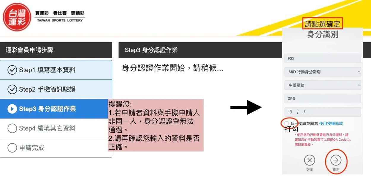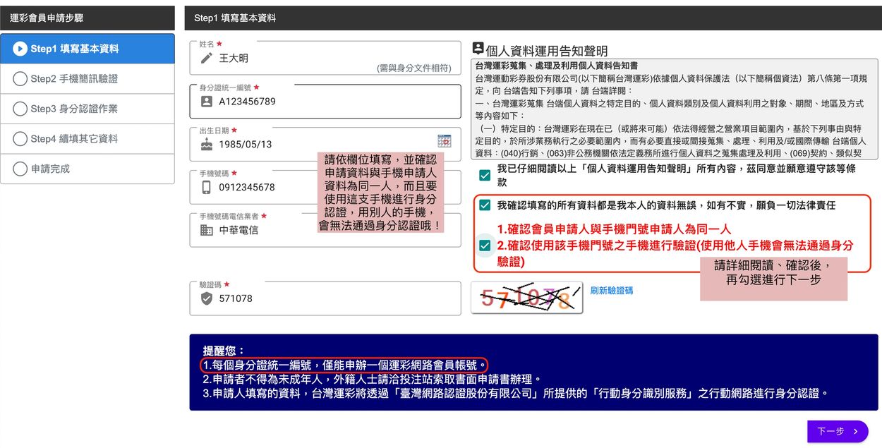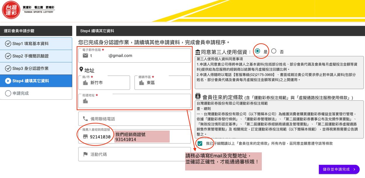 步驟1. 至運彩官網會員申請頁面,填寫基本資料