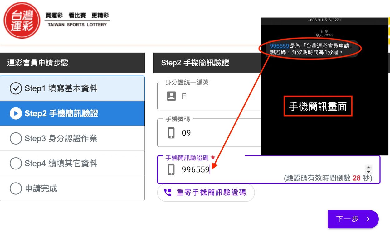 步驟2. 輸入您手機收到的手機簡訊驗證碼